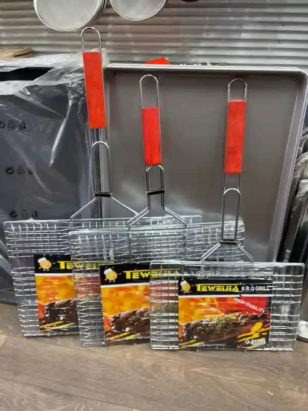 Решетка для гриля и барбекю Teweiia 22х34 см, стальная с деревянной ручкой